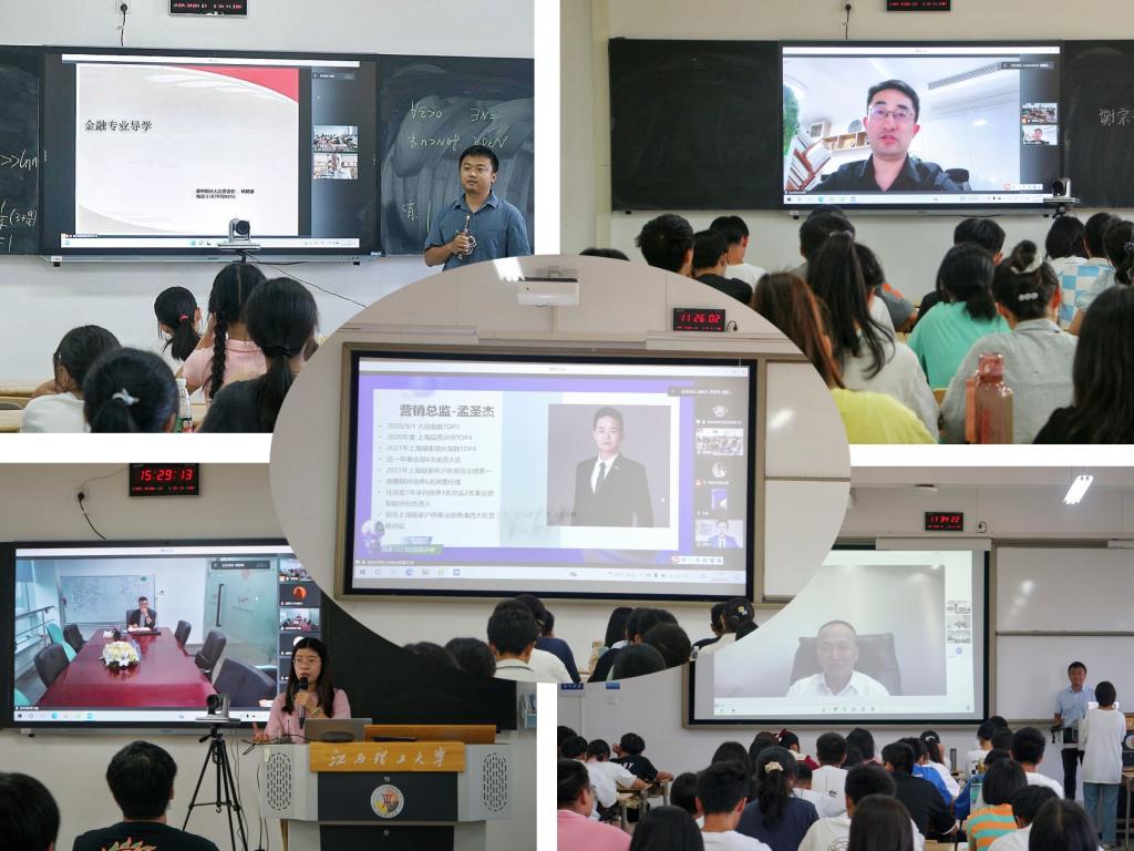 深圳泰博国际货运代理有限公司销售总监邝鑫为国际经济与贸易专业新生详细进行了详细的专业分析,拓宽了同学们对该行业的认知,接着在对自身所处企业进行实景直播的同时,介绍了该行业的工作情形,随后以学长的身份帮助同学们分析职业发展之路。上海迦林生物科技有限公司副总裁、财务总监谢宗博通过数据和各种事例为会计学专业新生分析了行业的发展现状,呼吁同学们明晰自身特点,及时完成自我定位。赣州银行人力资源总监杨鹏娟为金融专业新生分析金融专业的特点,并通过分享企业实景为同学们指明学习中应该掌握的技能与素养,提醒同学们要合理规划自己的职业生涯。深圳市大红点装饰有限公司总经理、江西理工大学深圳校友会造价专业分会会长、工程造价94级校友杨志朝则结合现实对造价行业的发展进行了细致分析,帮助工程造价专业新生明确了职业发展必备素质及资质。上海链家、校园品牌部经理王琤为工商管理专业新生介绍工商管理专业的特点,强调要在现实中锻炼自己的综合素质和管理能力,最后结合工作经验提醒大家要在大学期间重视涯规划和职业生涯规划。