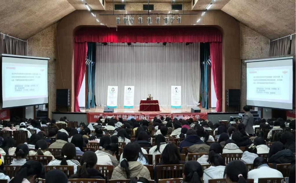 本网讯 为普及女性健康知识,助力健康认知与自护,11月26日,我院在红旗校区大礼堂举办了“千金守护,悦享健康同行”主题讲座。“你好千金”赣州市公益项目执行主任段勇科先生出席,南康区妇幼保健院廖禄红、肖孔玉、刘风兰三位主任医师担任主讲,会计学252班苏丽娅主持,2024、2025级全体女生参与。