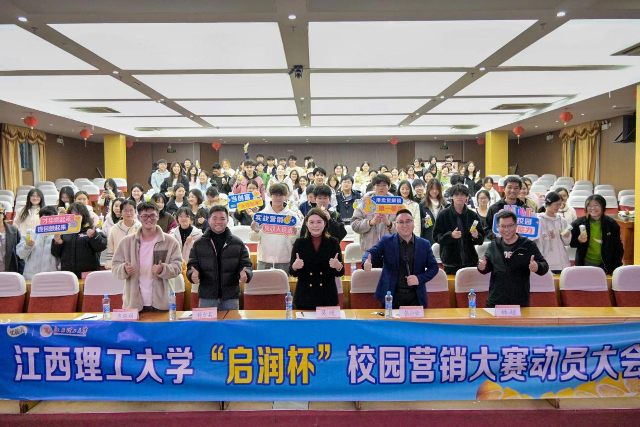 本网讯 为搭建学以致用的实践平台,激发同学们创新潜能与创业热情,锤炼商业实战技能,11月27日,我院于红旗校区图书馆赵氟隆报告厅举办“启润杯”校园营销大赛启动仪式。伊利公司赣州区域总经销刘少兵、推广经理袁取翔、营销经理林超,我院党委副书记吴媛、学工办副主任兼团委副书记张小松出席活动,由金融学241班陈洹玉担任主持。