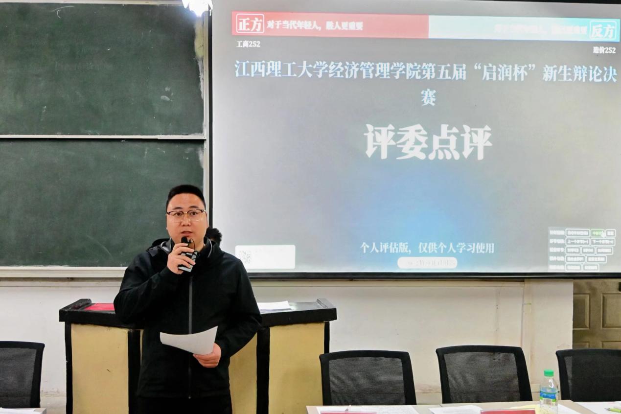 本网讯 为进一步丰富校园文化生活,提升同学们的思辨能力与综合素养,11月30日,我院于红旗校区二教101教室举办第五届“启润杯”新生辩论赛决赛。工商管理252班与工程造价252班的辩论队参与本次比赛。我院学工办副主任兼团委副书记张小松、2023级与2024级辩论队队长及教练和建筑与设计学院辩论队队长及教练担任评委,我院学生代表到场观赛。
