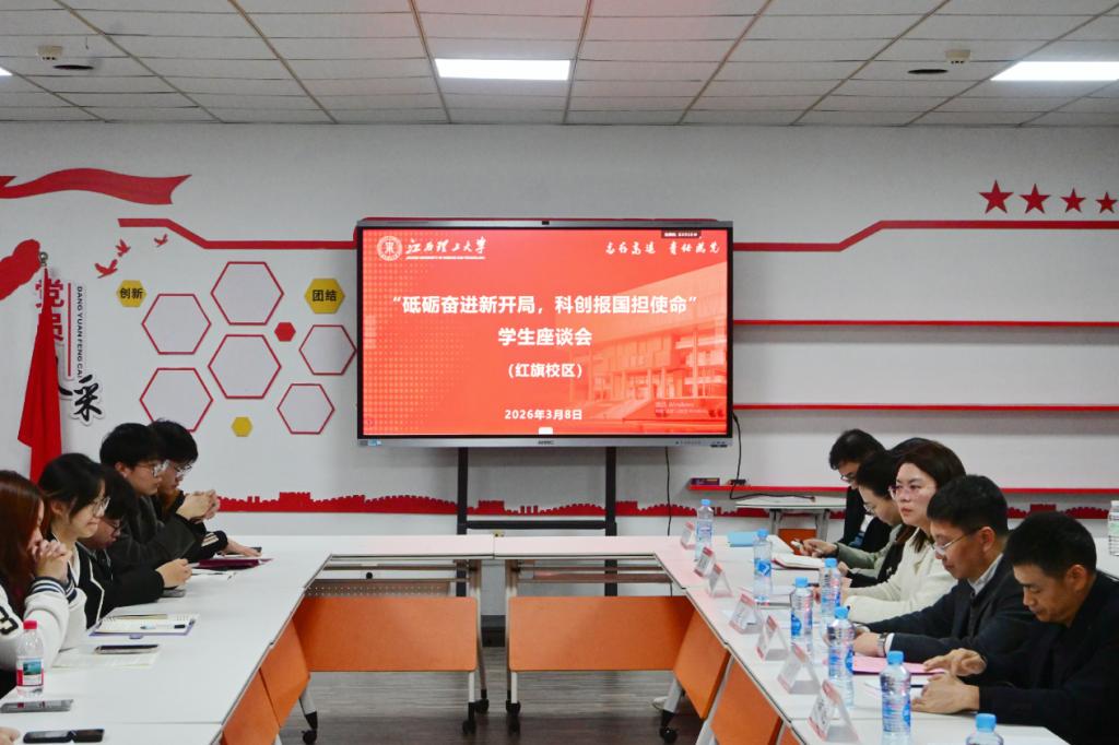 本网讯 3月8日,“一站式”学生社区红旗园区在经管楼205会议室召开春季开学初“砥砺奋进新开局,科创报国担使命”学生座谈会,共话校园发展。校党委常委、纪委书记、监察专员刘飞,校党委学生工作部副部长刘黎明、体育与艺术学院党委副书记黄鹿、红旗园区楼栋长、辅导员代表以及三十余名各楼栋、各学院学生代表共同参加,会议由红旗园区长、经济管理学院党委副书记吴媛主持。