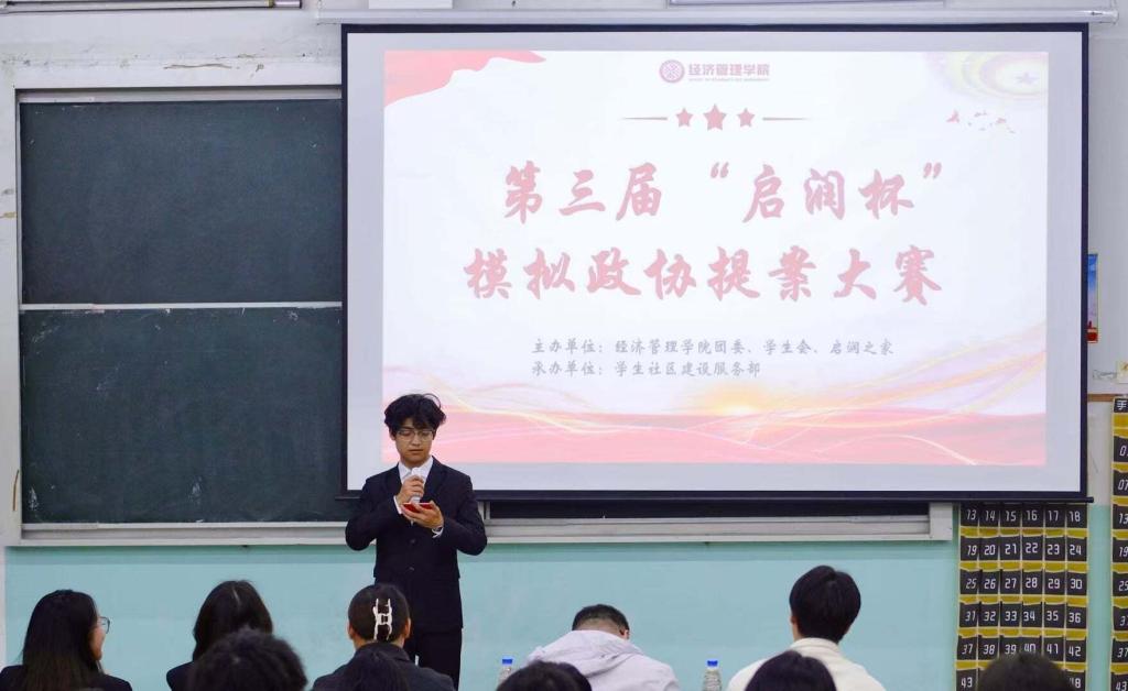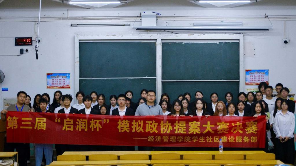 本网讯 为鼓励同学们对全国两会热点议题进行深入调研、理性思考,提高政治素养与建言献策能力,3月30日,我院第三届“启润杯”模拟政协大赛决赛于红旗校区主教D01教室举办。学院辅导员薛飞老师及研究生代表担任评委。