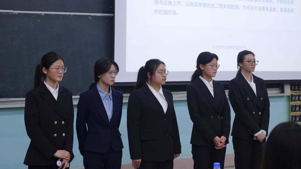 经过前期初审的筛选,12支优秀队伍成功晋级决赛。各参赛队伍采用讲解PPT+答辩的形式,紧扣社会热点和校园生活,围绕民生实事、校园建设、经济发展等多个主题,依次进行提案展示。调研扎实、阐述清晰,充分展现了青年学子的责任和担当。评委老师从可行性、创新性等方面进行点评指导,现场交流氛围热烈。