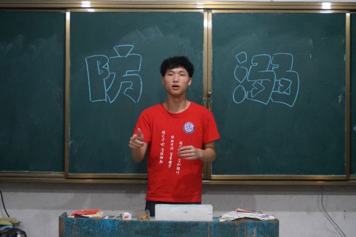 图为志愿者在课堂上宣讲防溺水知识。中国青年网通讯员 朱俊 供图