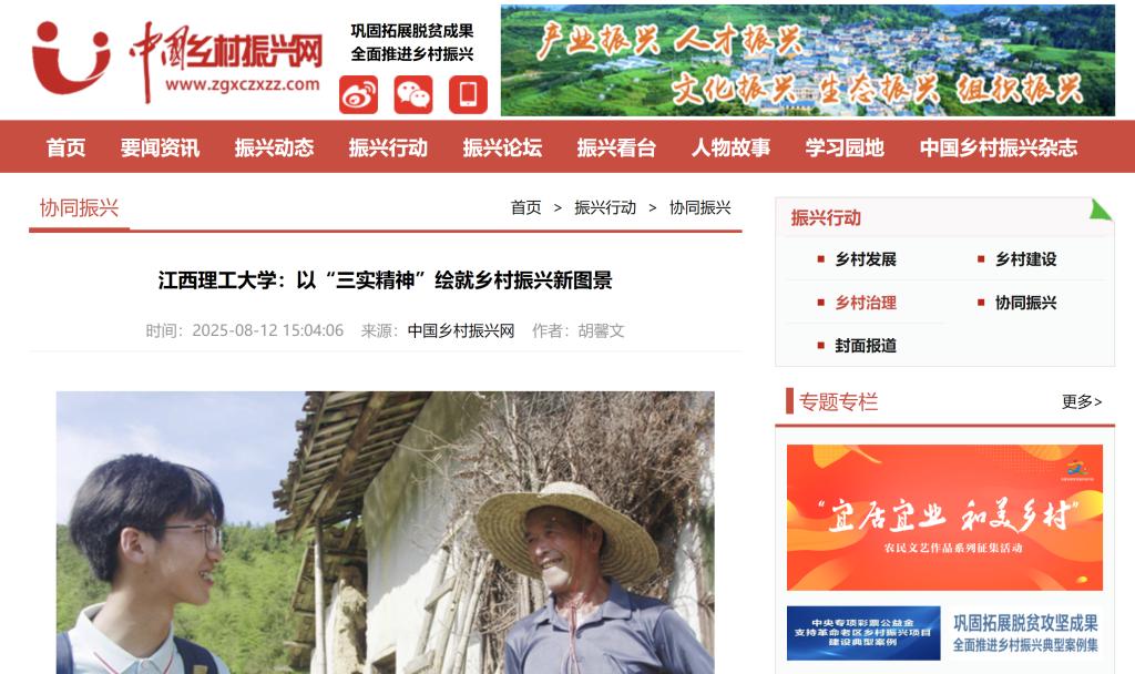从村民口中的“实在娃”,到发展路上的“好帮手”,江西理工大学学子用“三实精神”诠释了青年担当,以“诚实”打破隔阂,让高校真正读懂乡村;以“扎实”输送动能,让知识精准对接需求;以“踏实” 筑牢根基,让行动落地生根。高校与乡村的距离,从来不是空间远近,而是能否以精神为纽带,将“象牙塔”的智慧转化为“田埂上”的实效。当更多高校找到自身精神与基层实践的结合点,就能为乡村振兴注入源源不断的“活水”,这正是新时代高校服务社会的应有之义。青春的价值也不在于喊多响的口号,而在于干成多少实事。这既是江西理工大学“三实精神”的生动诠释,更是乡村振兴最需要的青春力量。