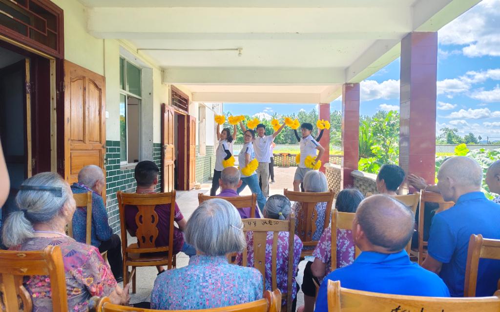 在当地举办的民族“村晚”上,他们与当地村民共演红色朗诵与民族歌舞,京族的婉约、侗族的热情与青春的活力相互交融,汇聚成歌。