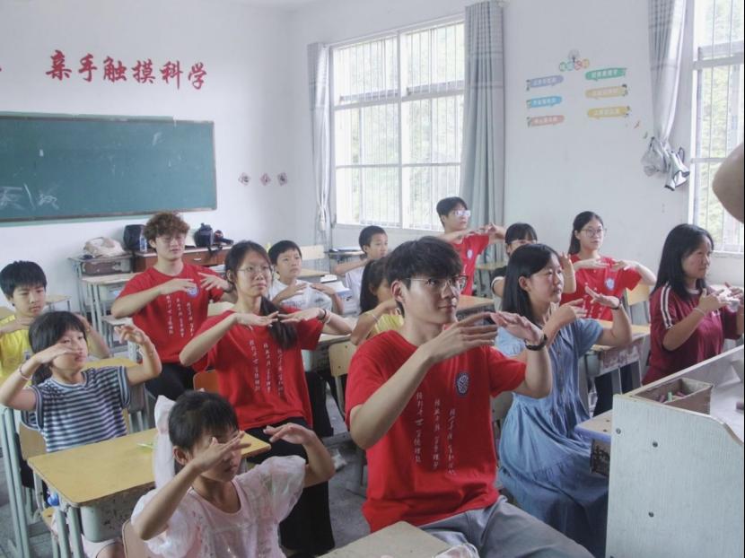 团队成员把课堂搬到了田间地头。“以前算成本只看数字,现在知道每片茶叶都连着农户的生计。”成员的报告里,多了许多带着泥土气息的案例。更动人的是代际间的精神接力。在贺堂小学的“红色小课堂”,队员们教孩子们缝制红军包,孩子们则拉着队员去看自己发现的“秘密基地”——贺堂小学旁的一棵老樟树。这样的双向奔赴中情谊悄然而生。