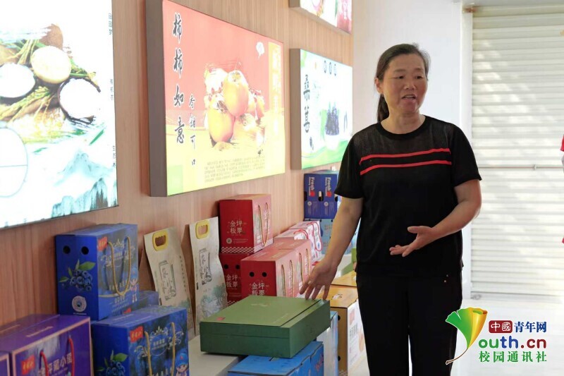 图为石玉莲介绍当地绿色农产品。陈有方 供图