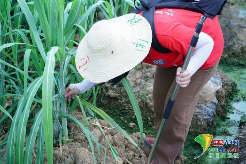 图为实践队员为甘蔗剥叶。赖梓熠 供图