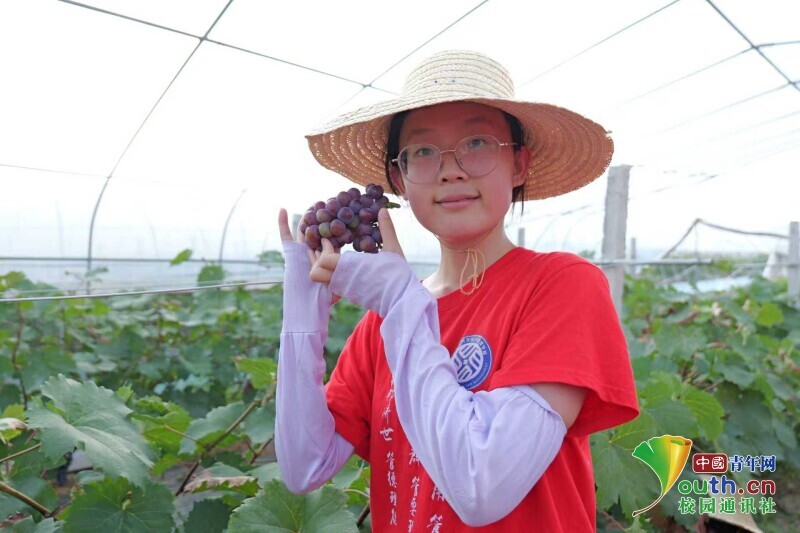 图为实践队员为葡萄拍摄宣传视频。陈有方 供图