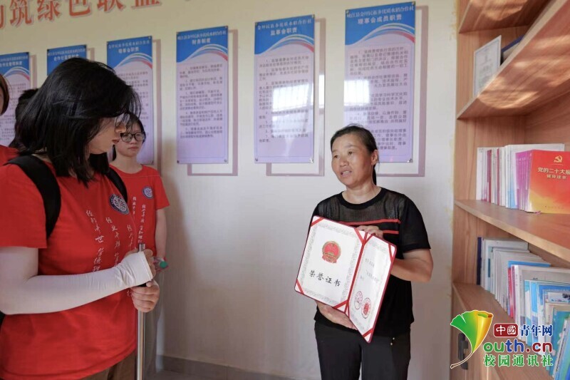 图为石玉莲与实践队员交流。赖梓熠 供图