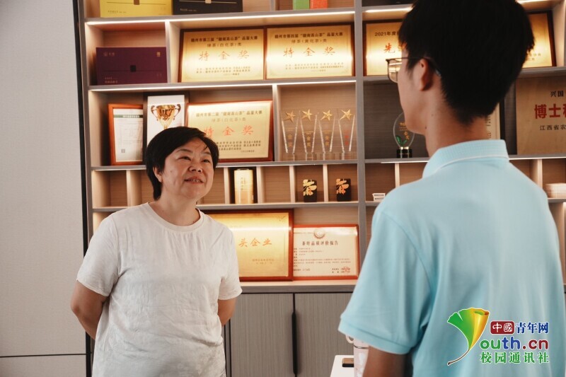图为学子采访茶厂负责人。