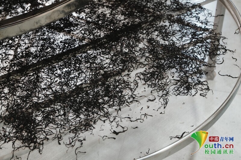图为工人晾晒刚搓好的茶叶。