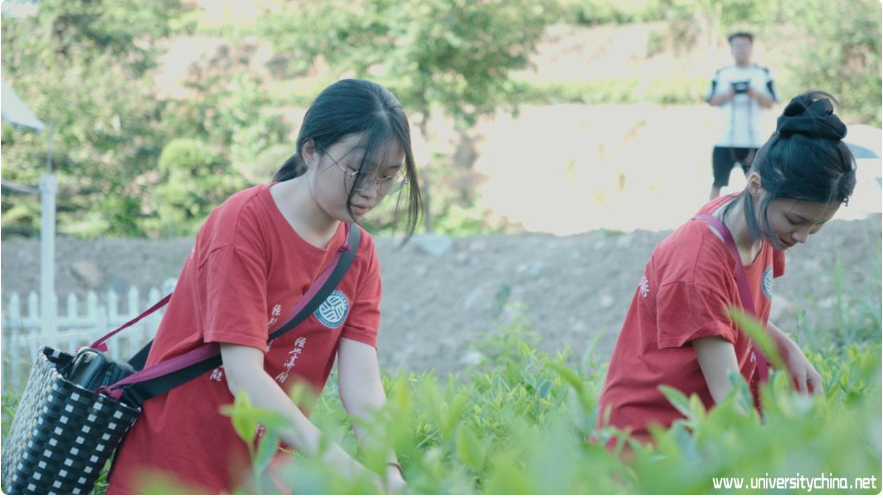 中国大学生网讯(胡馨文 金倬冉)清晨的薄雾漫过贺堂村的茶山,江西理工大学经济管理学院“红途铸魂,薪火兴邦”暑期三下乡社会实践服务队的队员们正跟着村民学习采茶。指尖捻过嫩绿的芽尖,仿佛触碰着这片土地的脉搏——这已是他们连续第五年扎根这座赣南山村。