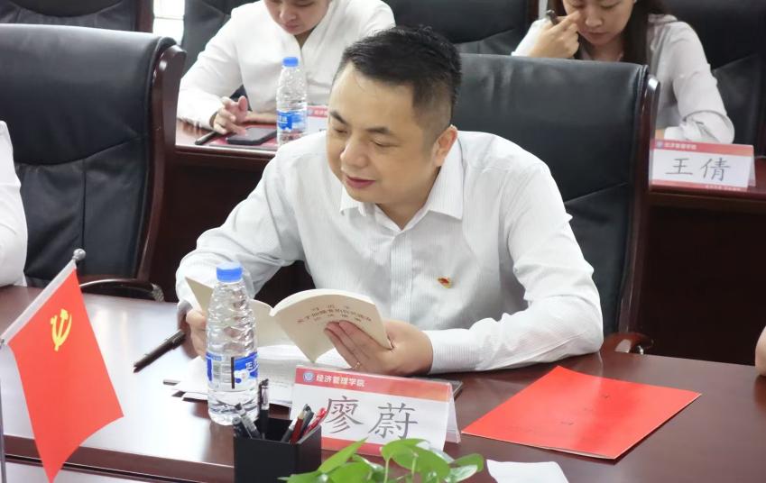 接下来,双方联合开展“深入学习贯彻中央八项规定精神”主题党日活动。廖蔚领学《习近平关于加强党的作风建设论述摘编》,强调党员干部要持之以恒纠治“四风”,以优良作风护航高质量发展。吴媛领学《习近平总书记在主持二十届中共中央政治局第二十次集体学习时的重要讲话精神》,深刻认识到人工智能作为引领新一轮科技革命和产业变革的战略性技术,正在深刻改变着人类的生产生活方式,接下来应在人工智能赋能管理、赋能学生、赋能教师等方面做出积极探索。接下来与会党员继续学习了《习近平总书记在庆祝中华全国总工会成立100周年暨全国劳动模范和先进工作者表彰大会上的重要讲话精神》等其他学习材料。