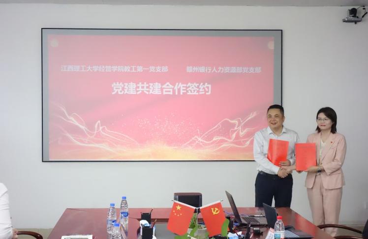 活动伊始,我院党委副书记、教工第一党支部书记吴媛与赣州银行人力资源部党支部书记廖蔚共同签署党建共建合作协议。