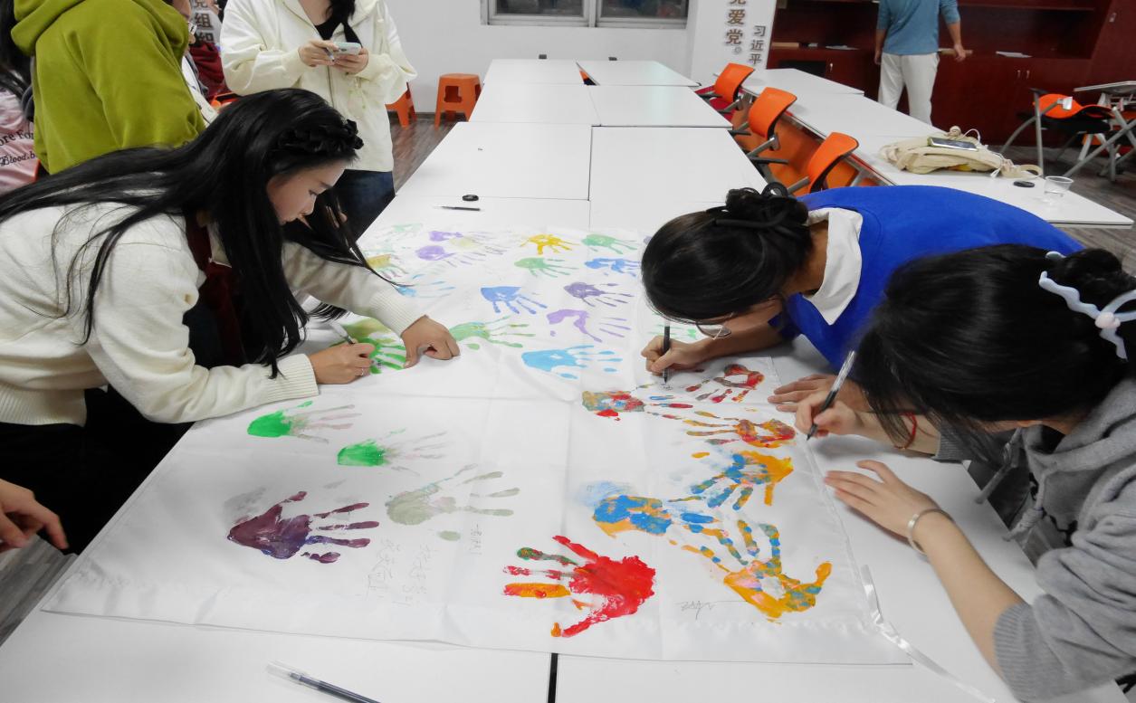 在互动环节中,同学们积极参与,现场氛围热烈。“情绪雕塑家”游戏中,大家借助粘土将抽象的压力感受具象化为立体作品,在“创作—猜测”的过程中收获理解与共鸣;随后的“集体涂鸦”活动中,参与者以手为笔、共绘“成长之树”,并在协作中分享近期压力体验与实用解压方法,建立起彼此支持的情感联结。