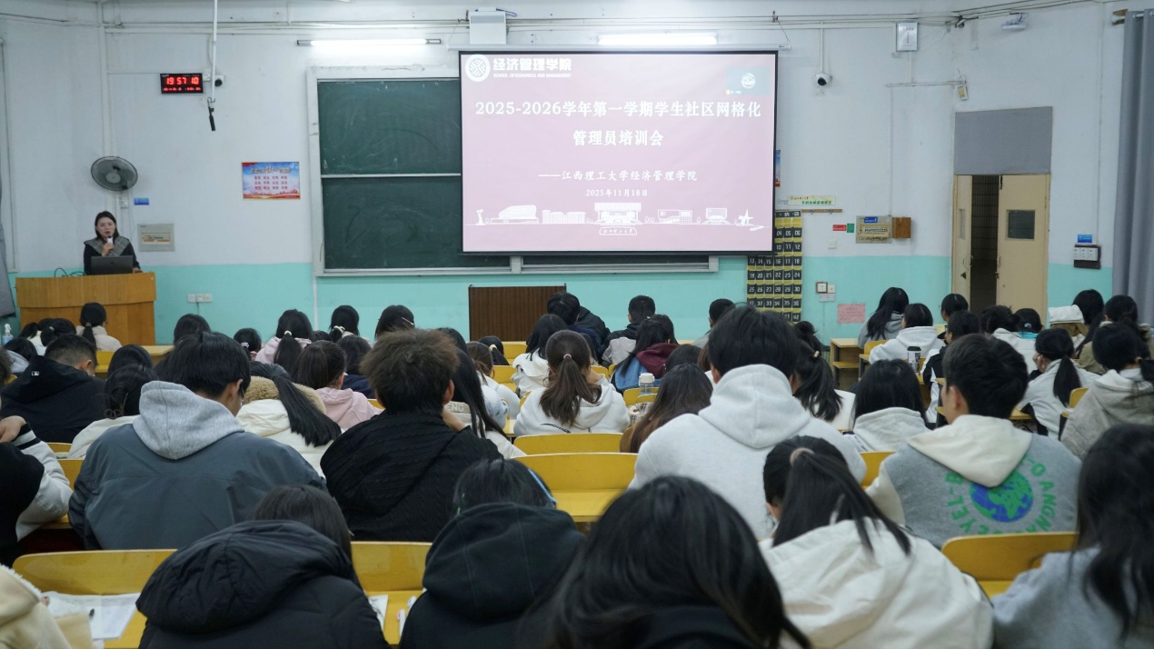 本网讯 为破解学生宿舍常见问题,提升服务效能,筑牢校园安全防线,11月18日,学院于红旗校区主教D01教室召开学生社区网格化管理员培训会。会议由学院党委副书记吴媛、辅导员薛飞主讲,国际经济与贸易252班王俊涛主持,学院楼层长、生活委员及寝室长参会。