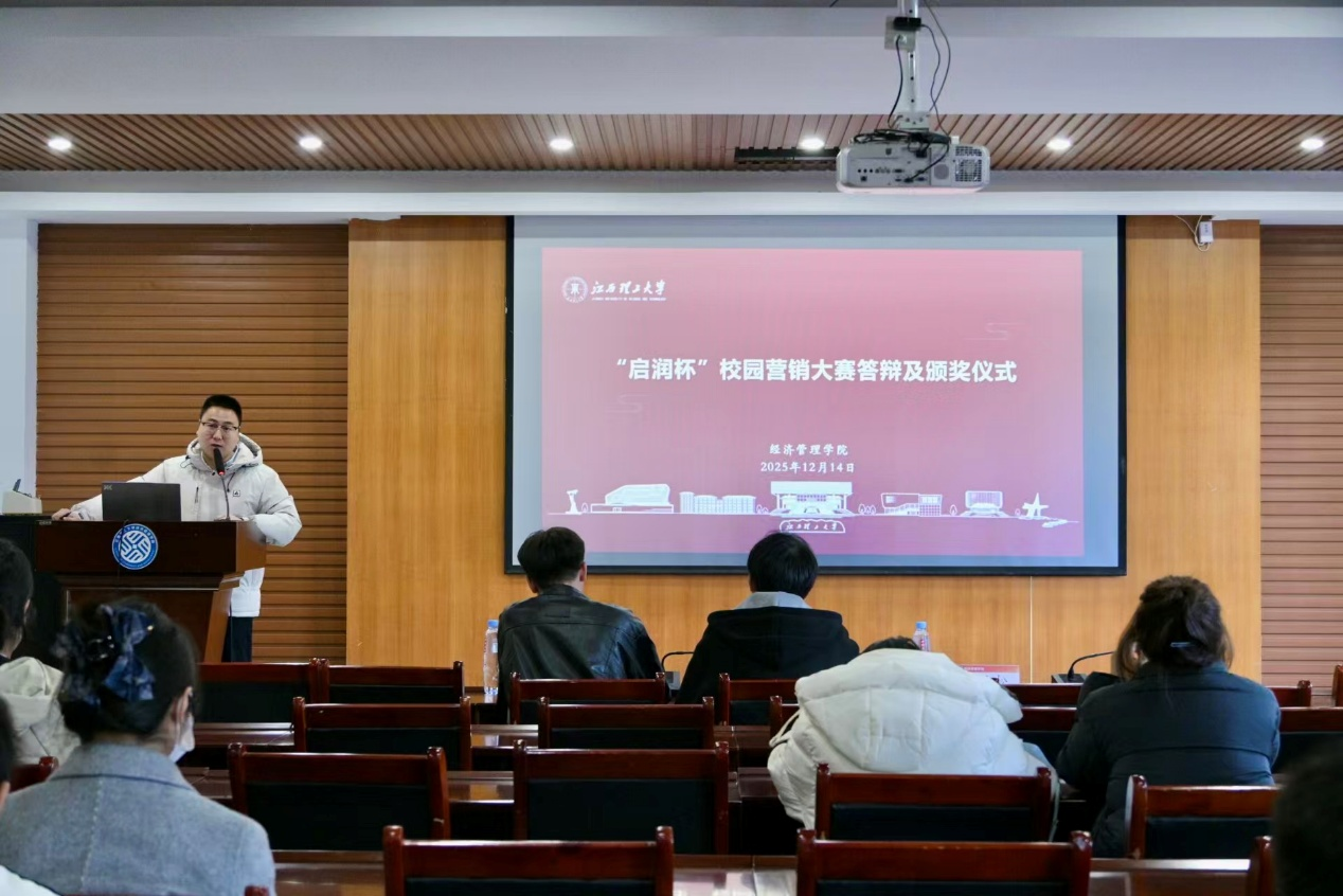 本网讯 为激励同学们积极参与创新创业,锤炼商业实战能力,12月14日,我院于红旗校区经管楼203教室举办“启润杯”校园营销大赛答辩及颁奖仪式。本次比赛由伊利公司赣州区域推广经理袁取翔、伊利公司赣州区域营销主管邹志鹏、我院学工办副主任兼团委副书记张小松担任评委,我院党委副书记吴媛出席,国际经济与贸易251班王孜怡主持,共有13支参赛队伍同台竞技。
