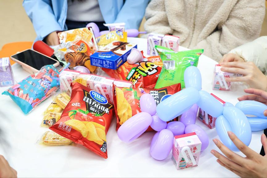 活动以“解压 + 迎新”为核心,分三大环节有序开展,全程氛围温暖融洽。首先是多巴胺长气球手工坊,学子们发挥创意动手创作,用彩色长气球DIY小兔子、花朵、宝剑等可爱造型,成品互赠的过程中,缤纷色彩与创意乐趣驱散了旧年烦恼。