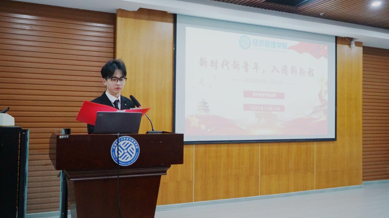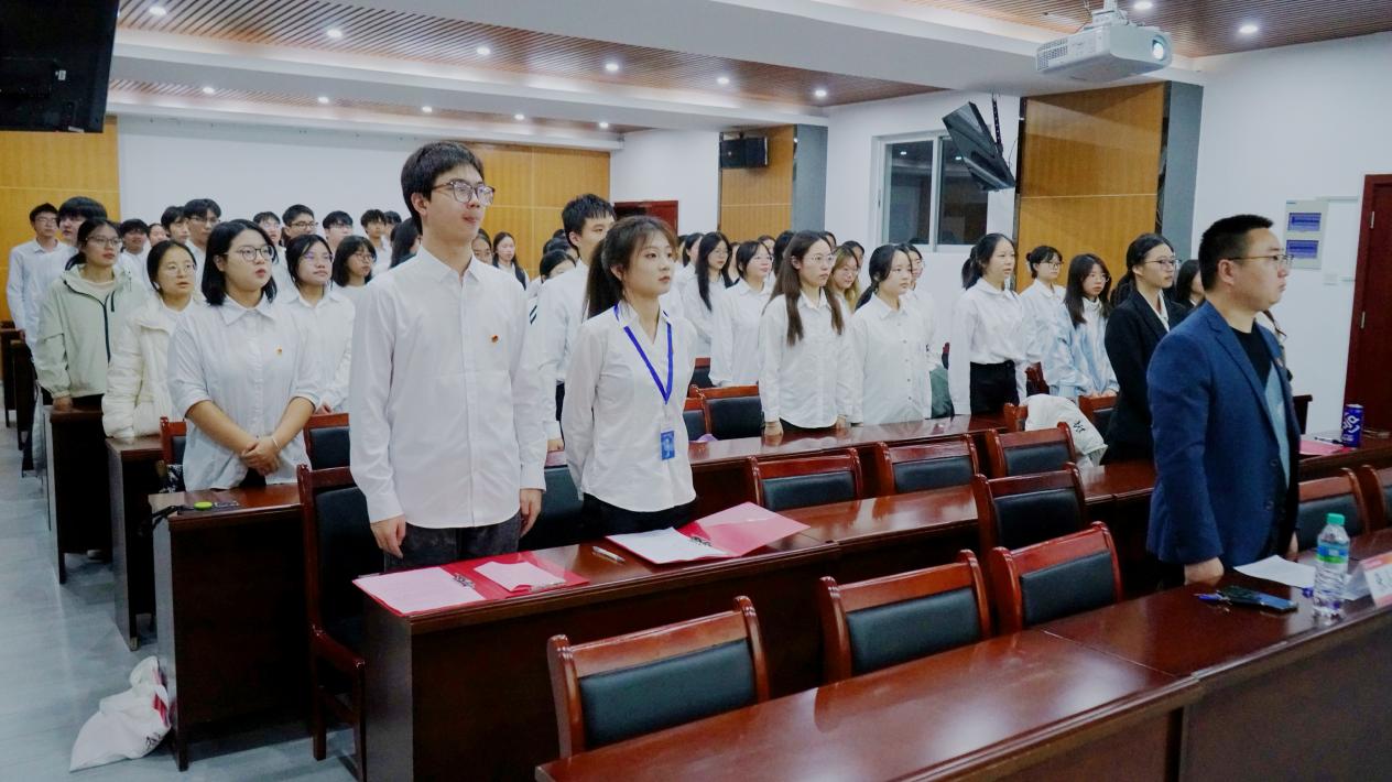 本网讯 为进一步加强共青团组织建设,引导青年学生坚定理想信念,12月10日,我院于经管楼203教室举办入团仪式和主题团日活动。学院学工办副主任兼团委副书记张小松、团委组织部全体成员、新发展团员及部分学生代表齐聚现场,会计学241班傅书豪担任主持人。