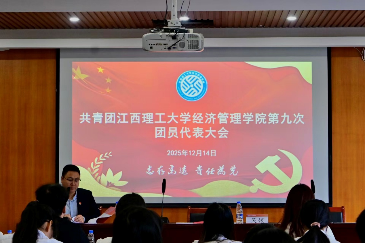 本网讯 12月14日,共青团江西理工大学经济管理学院第九次团员代表大会在红旗校区经管楼203会议室顺利召开。校团委副书记黄芳、院党委副书记吴媛、院团委副书记张小松出席会议,研究生、本科生团支部团员代表共同参与。