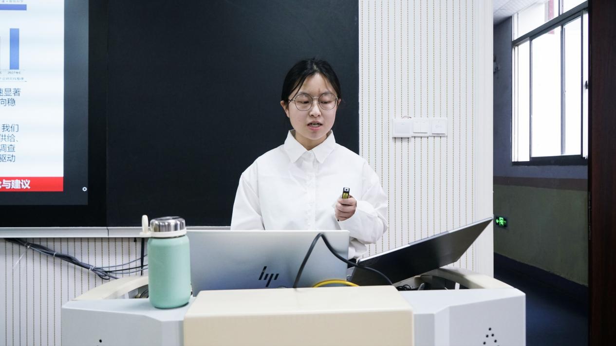在答辩环节,各队伍分别围绕低空经济、银发经济、乡村振兴等方向,综合运用理论分析、实地调研、数据整合等方法阐述研究成果并进行论证。评委结合汇报内容进行逐一点评并提问,参赛选手现场进行答辩。